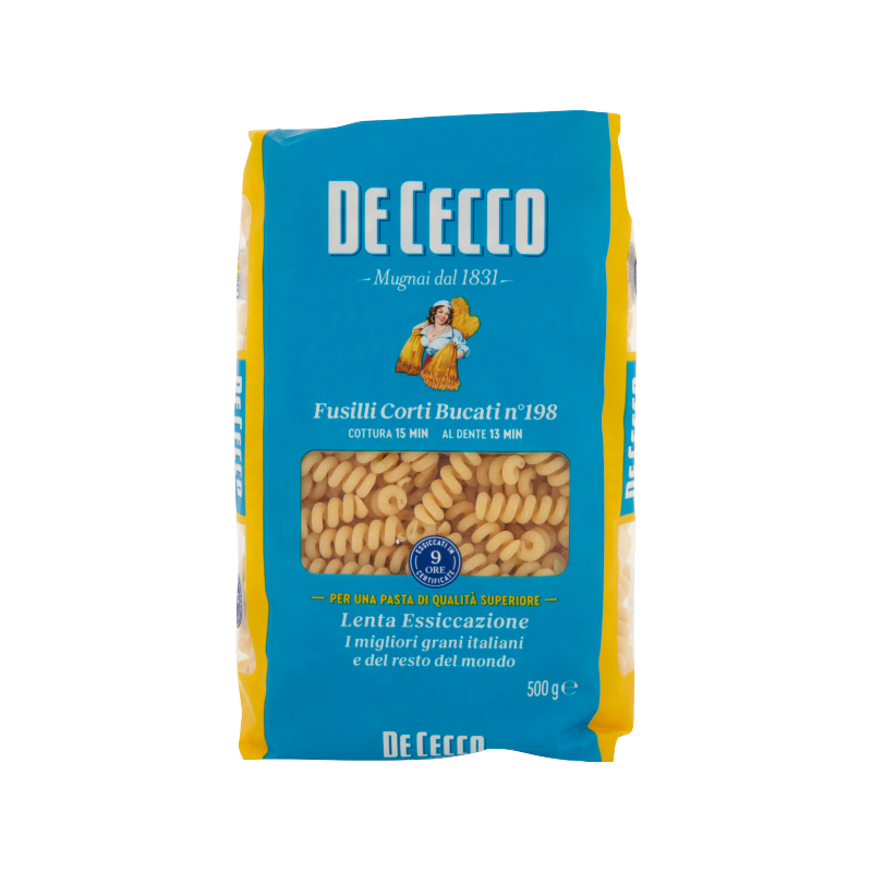 De Cecco n. 198 holle fusilli / Fusilli corti bucati – holle fusilli (Best Before 02-20-26)